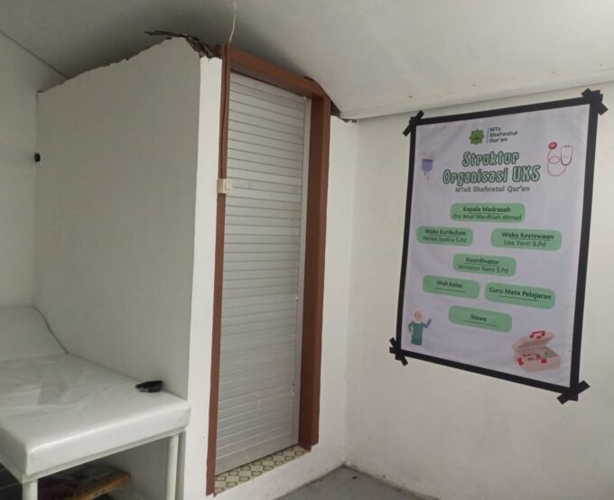 Ruang Unit Kesehatan Siswi (UKS) MTs Shafwatul Qur'an berfungsi sebagai fasilitas layanan kesehatan dasar bagi santriwati dalam menjaga kebugaran dan kenyamanan selama kegiatan belajar. Dengan lingkungan yang bersih, tenang, dan terawat, UKS mendukung penanganan awal kesehatan serta edukasi hidup bersih dan sehat sebagai bagian dari pelatihan karakter dan kedisiplinan santriwati.